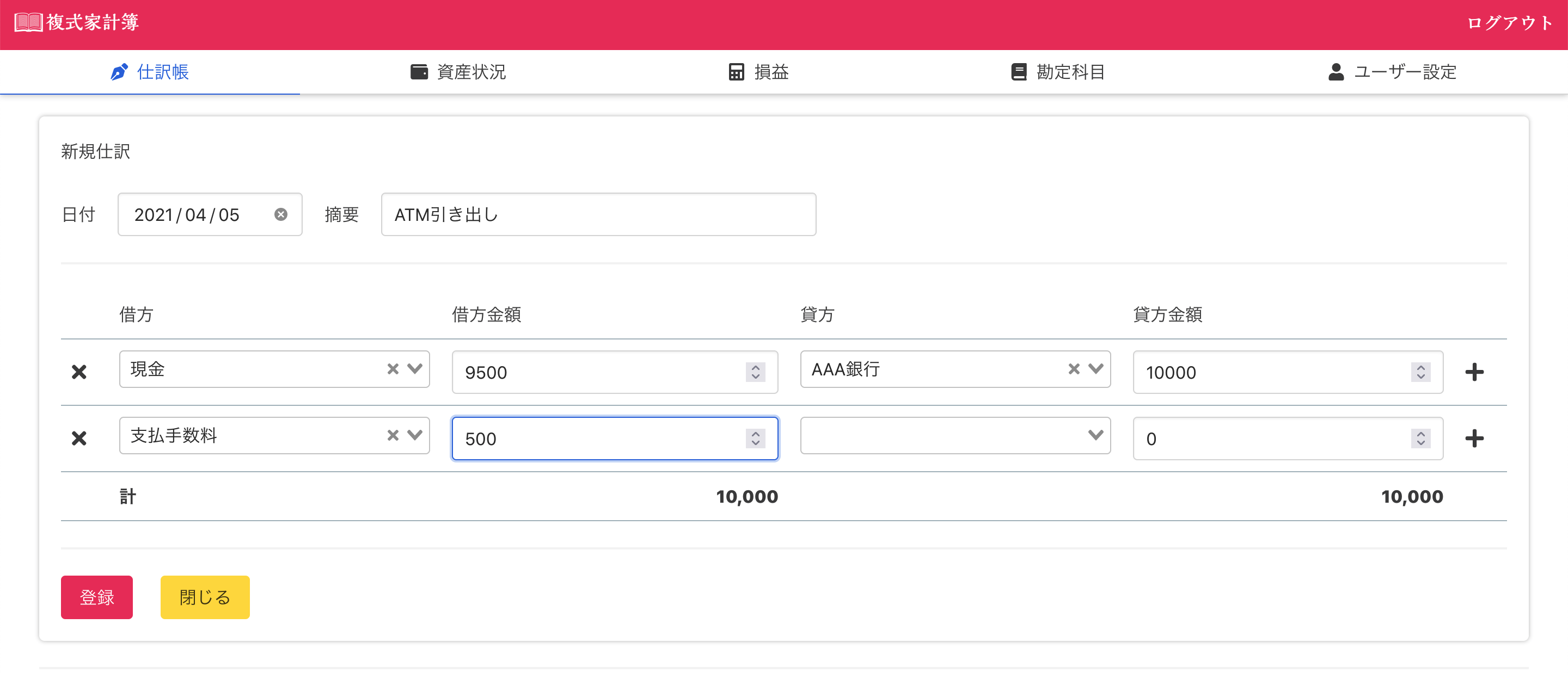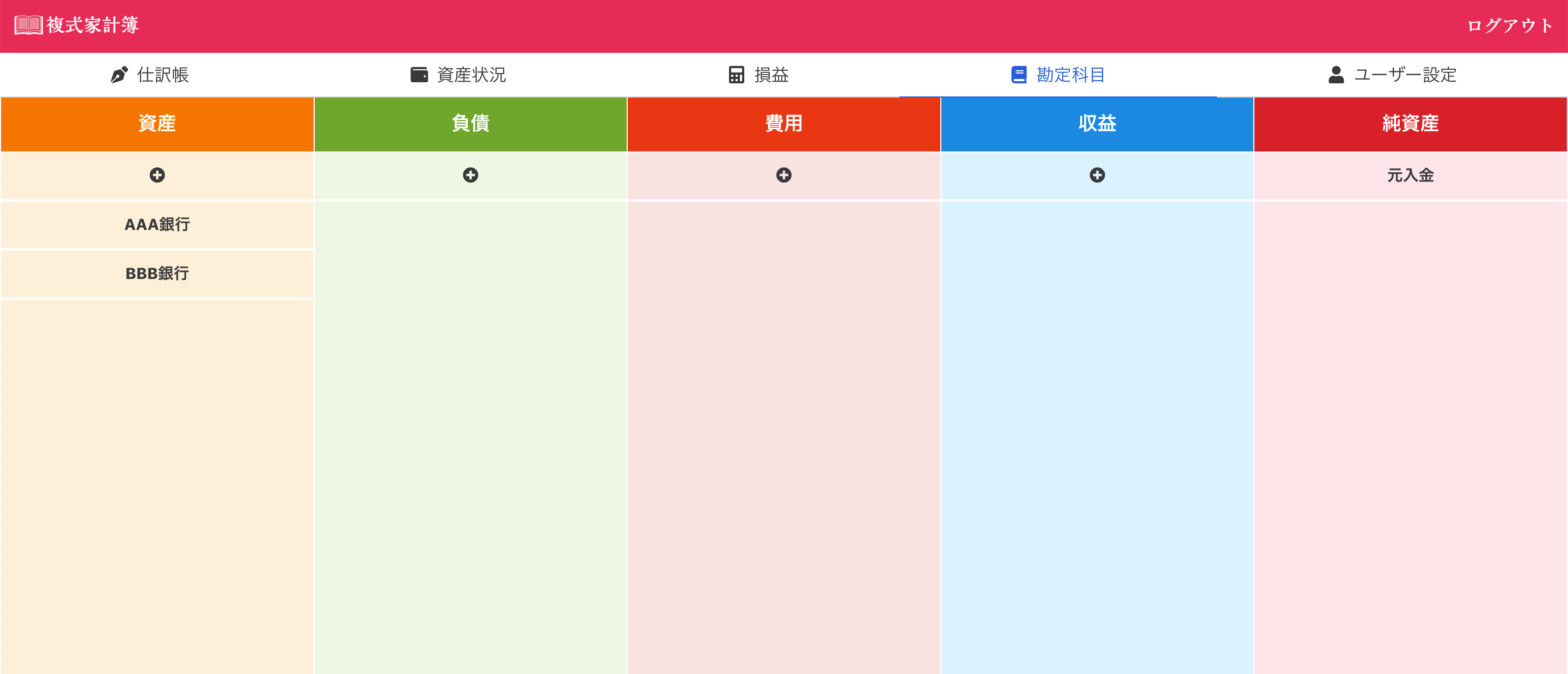 勘定科目の設定、仕訳、資産の集計が可能で、効率的な家計管理を実現。